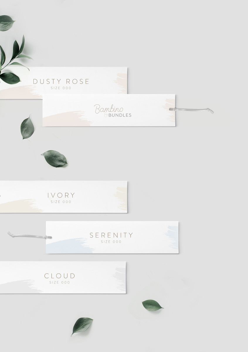 The Bambino & Bundles branding project elegantly encompasses soft, clean aesthetics in the creation of a comprehensive brand identity that includes logo design, a meticulously crafted style guide, and a harmonious color palette. Additionally, the project involved designing packaging and swing tags that seamlessly aligned with the brand’s image.