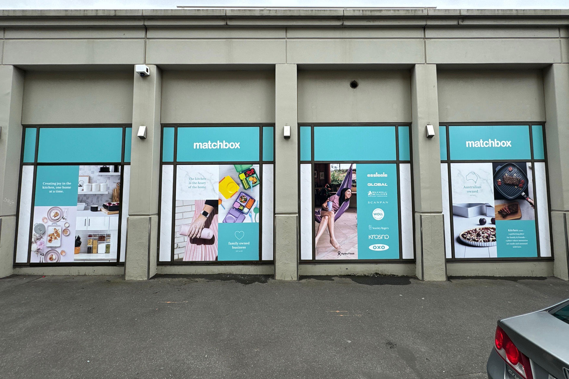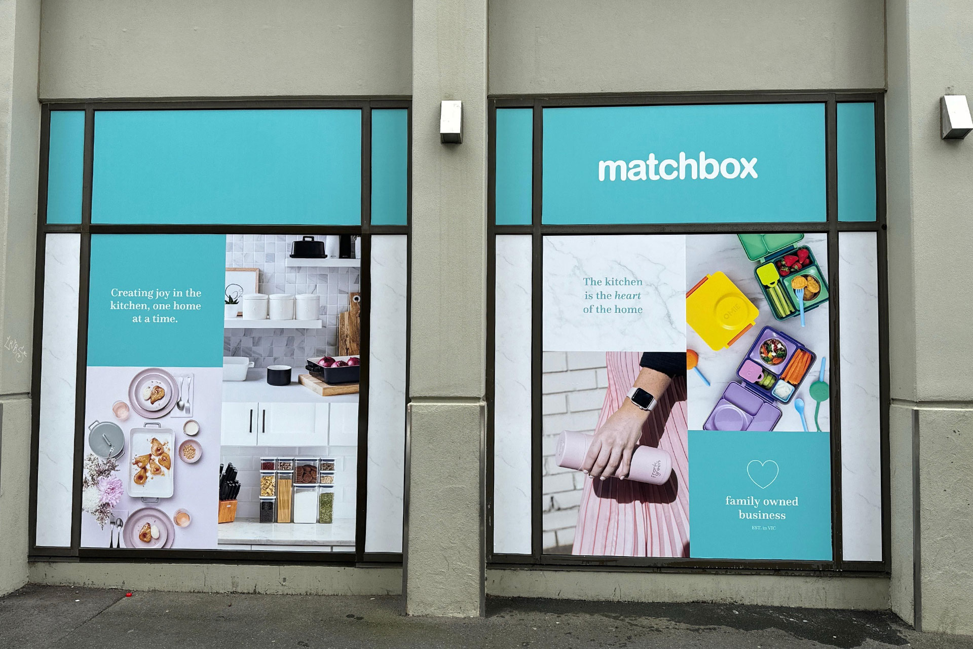 For the Matchbox Kitchenware branding project, our focus was on creating vibrant and eye-catching large window decals to adorn the sides of their two new retail locations. Striking a balance between brightness and the brand’s premium, clean aesthetics, the design seamlessly integrates captivating visuals that not only draw attention but also enhance the overall visual appeal of the spaces, inviting customers into a world of stylish and high-quality kitchenware.